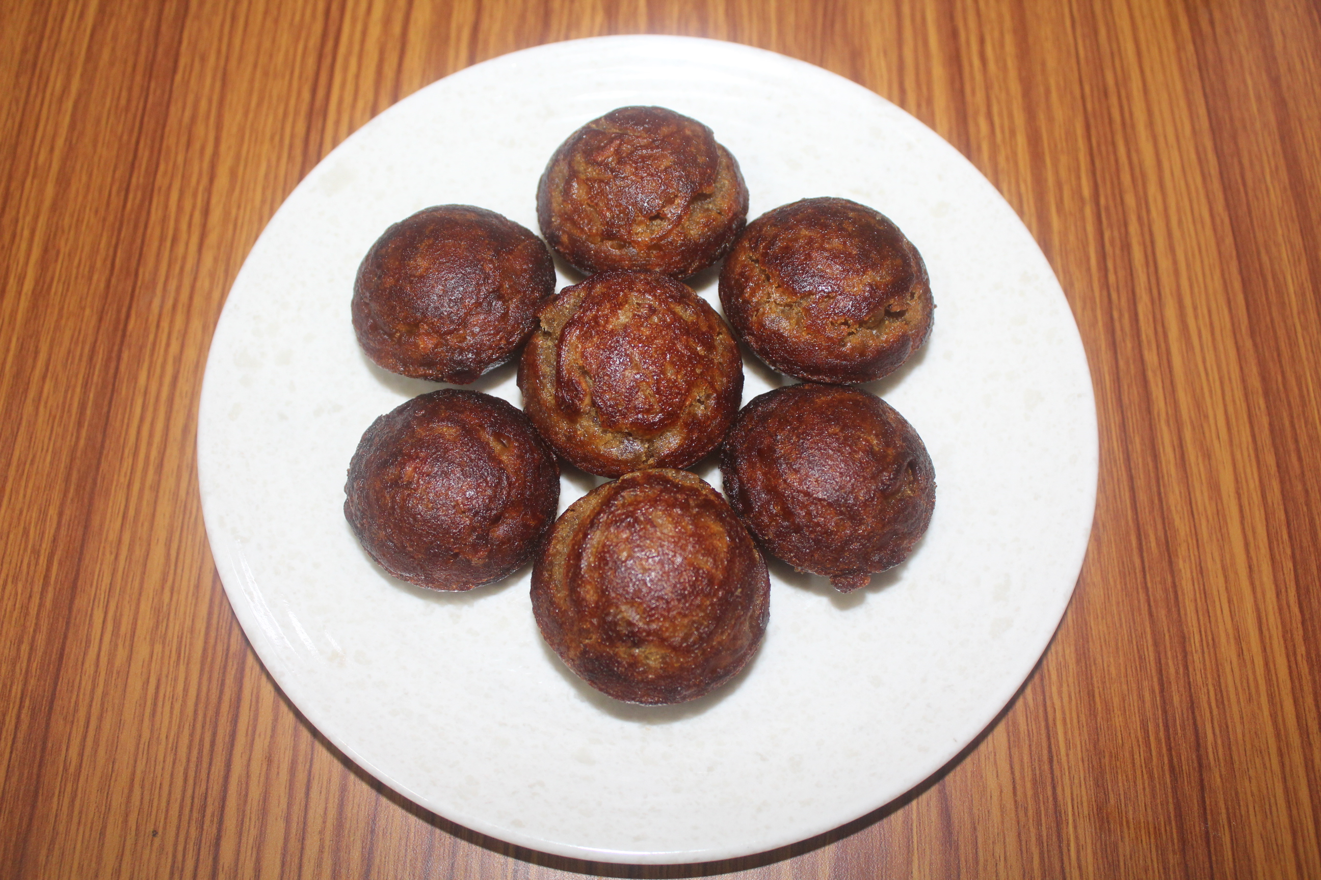 Nei appam is made with rice flour, wheat flour, banana and jaggery. All the ingredients are mixed together and, fried in a paniyaram pan with a dollop of ghee.